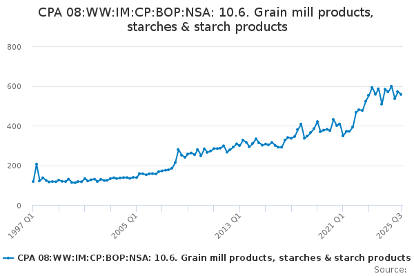 Download this time seriesCPA 08:WW:IM:CP:BOP:NSA: 10.6. Grain mill products, starches & starch products