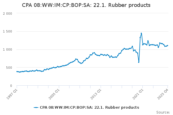 Download this time seriesCPA 08:WW:IM:CP:BOP:SA: 22.1. Rubber products