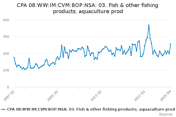 Download this time seriesCPA 08:WW:IM:CVM:BOP:NSA: 03. Fish & other fishing products; aquaculture prod