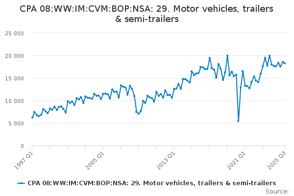 Download this time seriesCPA 08:WW:IM:CVM:BOP:NSA: 29. Motor vehicles, trailers & semi-trailers