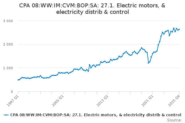 Download this time seriesCPA 08:WW:IM:CVM:BOP:SA: 27.1. Electric motors, & electricity distrib & control