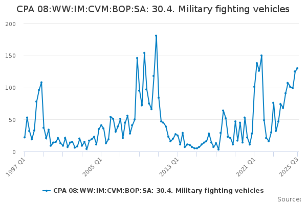 Download this time seriesCPA 08:WW:IM:CVM:BOP:SA: 30.4. Military fighting vehicles