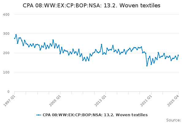 Download this time seriesCPA 08:WW:EX:CP:BOP:NSA: 13.2. Woven textiles