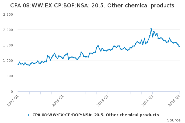 Download this time seriesCPA 08:WW:EX:CP:BOP:NSA: 20.5. Other chemical products