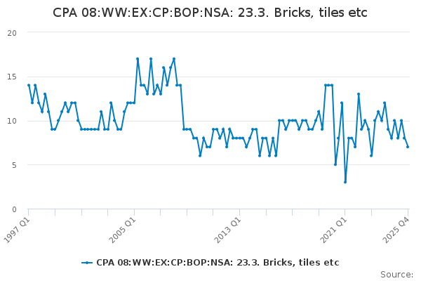 Download this time seriesCPA 08:WW:EX:CP:BOP:NSA: 23.3. Bricks, tiles etc