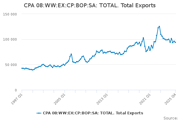Download this time seriesCPA 08:WW:EX:CP:BOP:SA: TOTAL. Total Exports