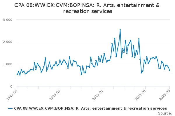 Download this time seriesCPA 08:WW:EX:CVM:BOP:NSA: R. Arts, entertainment & recreation services