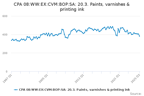 Download this time seriesCPA 08:WW:EX:CVM:BOP:SA: 20.3. Paints, varnishes & printing ink