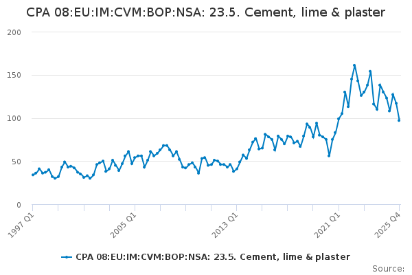 Download this time seriesCPA 08:EU:IM:CVM:BOP:NSA: 23.5. Cement, lime & plaster