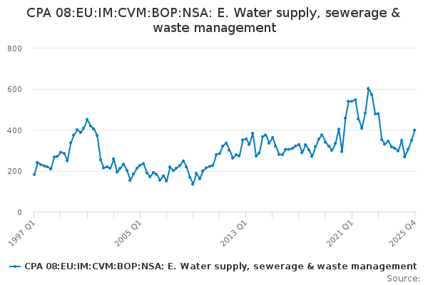 Download this time seriesCPA 08:EU:IM:CVM:BOP:NSA: E. Water supply, sewerage & waste management