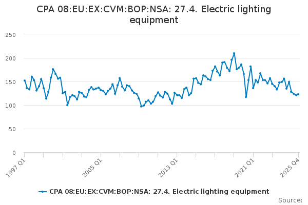 Download this time seriesCPA 08:EU:EX:CVM:BOP:NSA: 27.4. Electric lighting equipment