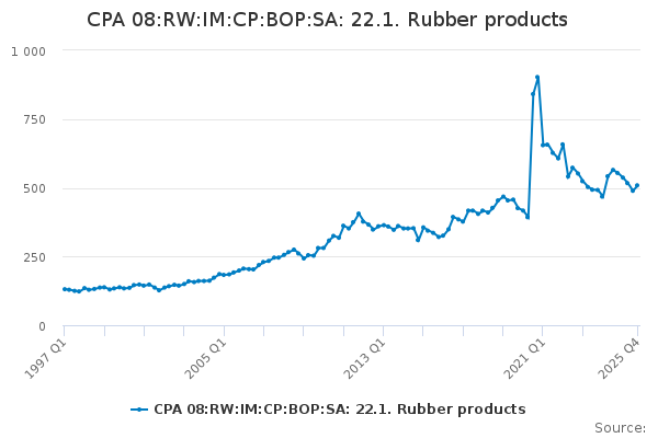 Download this time seriesCPA 08:RW:IM:CP:BOP:SA: 22.1. Rubber products