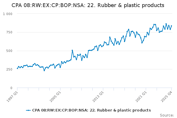 Download this time seriesCPA 08:RW:EX:CP:BOP:NSA: 22. Rubber & plastic products