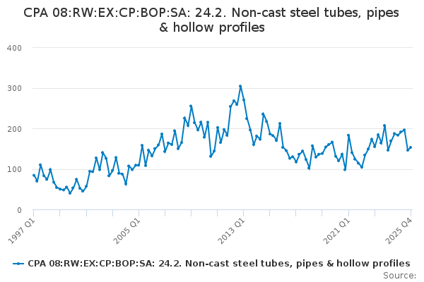 Download this time seriesCPA 08:RW:EX:CP:BOP:SA: 24.2. Non-cast steel tubes, pipes & hollow profiles