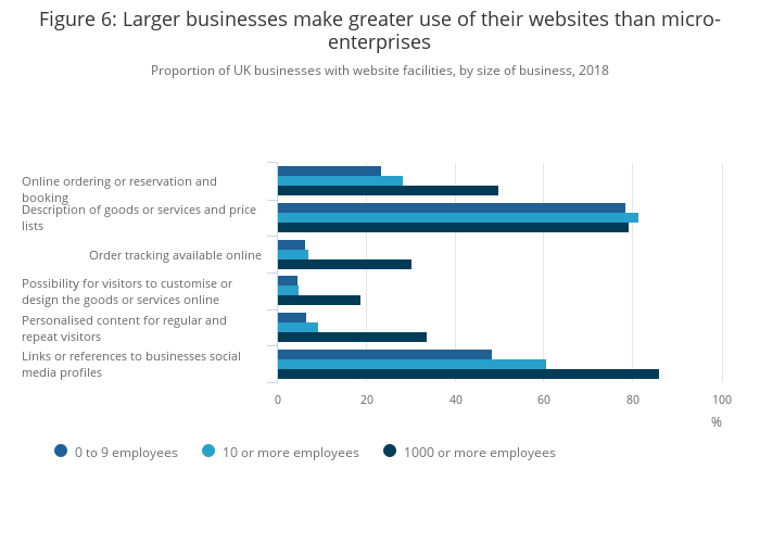 Download this chart Figure 6: Larger businesses make greater use of their websites than micro-enterprises