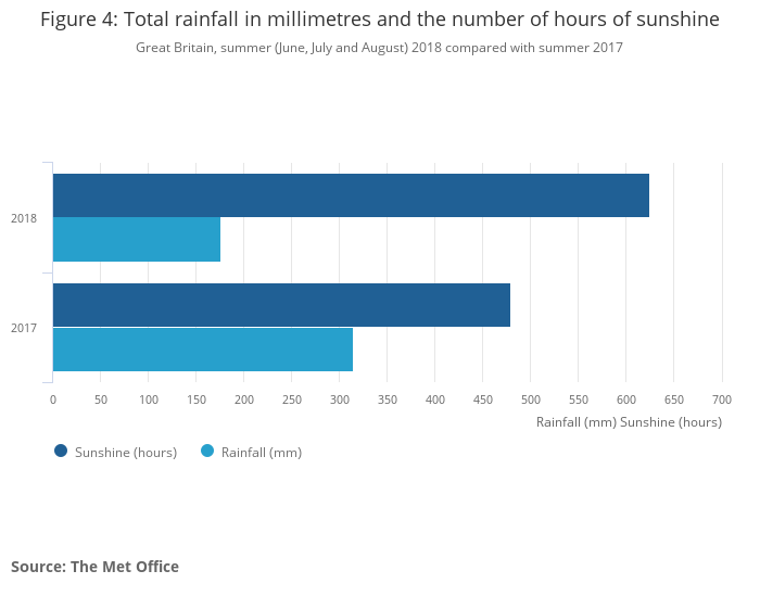 Great Britain, summer (June, July and August) 2018 compared with summer 2017