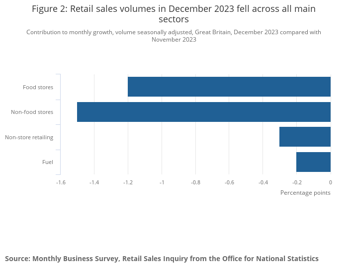 Figure 2: Retail sales volumes in December 2023 fell across all main sectors
