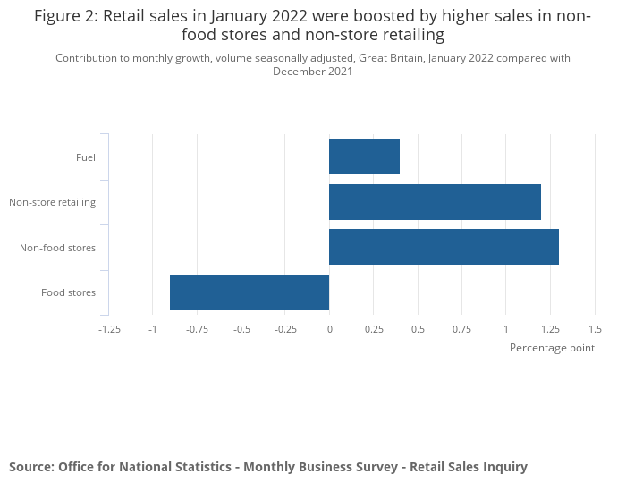 Figure 2: Retail sales in January 2022 were boosted by higher sales in non-food stores and non-store retailing