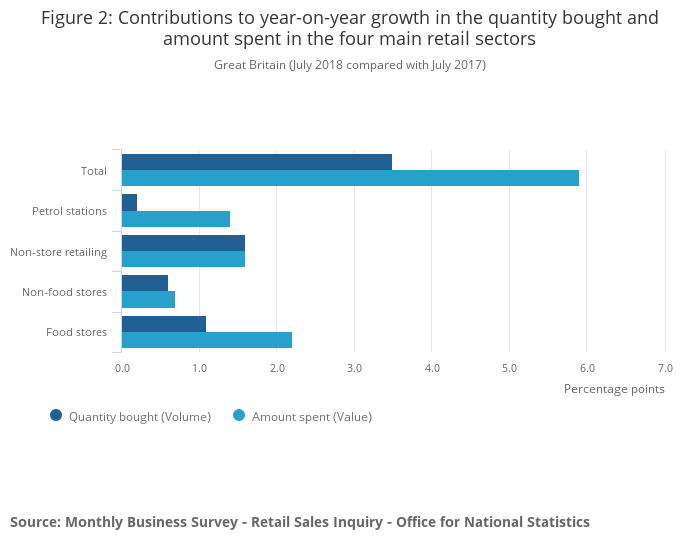 Feedback from non-store retailers suggested that online promotions further encouraged sales, while non-food stores reported a reduction in footfall in July 2018.