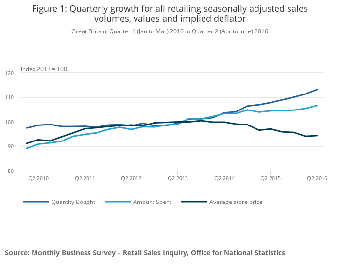 According to the British Retail Consortium, Britain's retailers saw stable sales despite the fall in sterling following the EU referendum vote. Similarly, the Bank of England’s Agent Summary of Business Conditions suggests the growth in the value of retail sales had changed little over the second quarter of 2016.