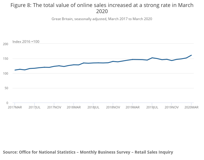 Figure 8: The total value of online sales increased at a strong rate in March 2020