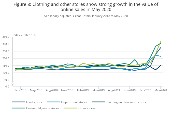 Figure 8: Clothing and other stores show strong growth in the value of online sales in May 2020