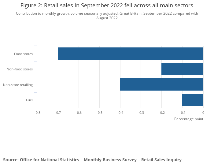 Figure 2: Retail sales in September 2022 fell across all main sectors