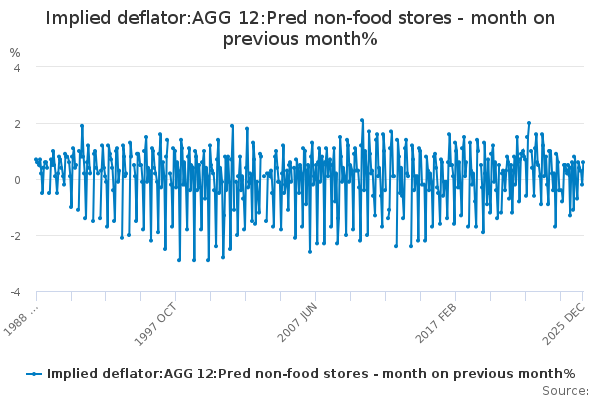 Download this time seriesImplied deflator:AGG 12:Pred non-food stores - month on previous month%
