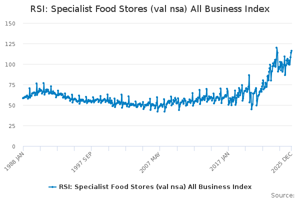 Download this time seriesRSI: Specialist Food Stores (val nsa) All Business Index
