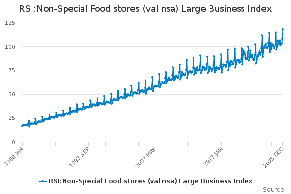 Download this time seriesRSI:Non-Special Food stores (val nsa) Large Business Index