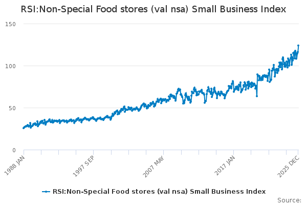 Download this time seriesRSI:Non-Special Food stores (val nsa) Small Business Index