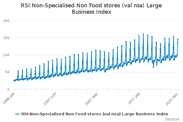 Download this time seriesRSI:Non-Specialised Non Food stores (val nsa) Large Business Index