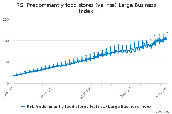 Download this time seriesRSI:Predominantly food stores (val nsa) Large Business Index