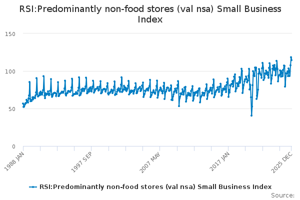 Download this time seriesRSI:Predominantly non-food stores (val nsa) Small Business Index