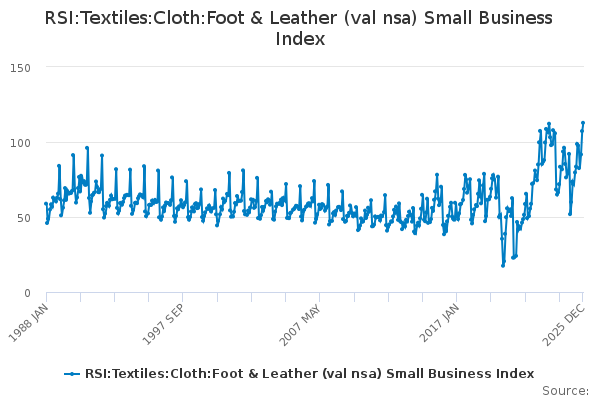 Download this time seriesRSI:Textiles:Cloth:Foot & Leather (val nsa) Small Business Index