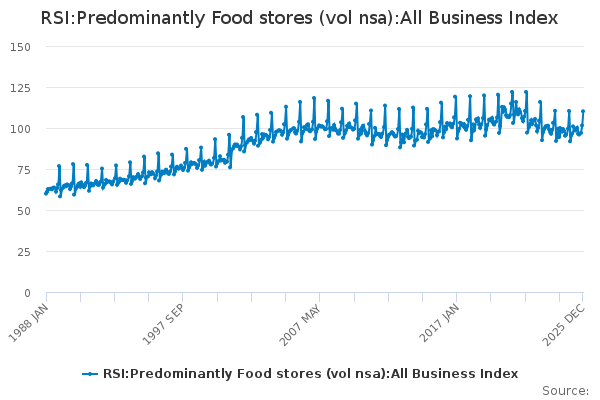 Download this time seriesRSI:Predominantly Food stores (vol nsa):All Business Index