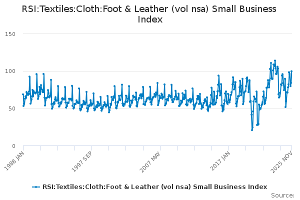 Download this time seriesRSI:Textiles:Cloth:Foot & Leather (vol nsa) Small Business Index