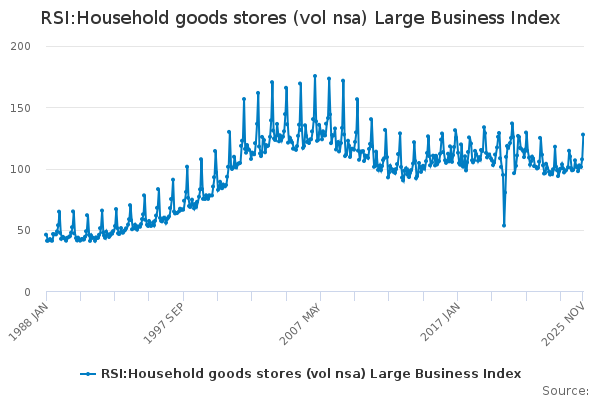 Download this time seriesRSI:Household goods stores (vol nsa) Large Business Index