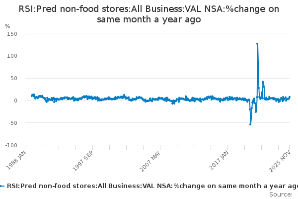 Download this time seriesRSI:Pred non-food stores:All Business:VAL NSA:%change on same month a year ago