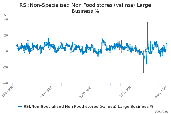 Download this time seriesRSI:Non-Specialised Non Food stores (val nsa) Large Business %