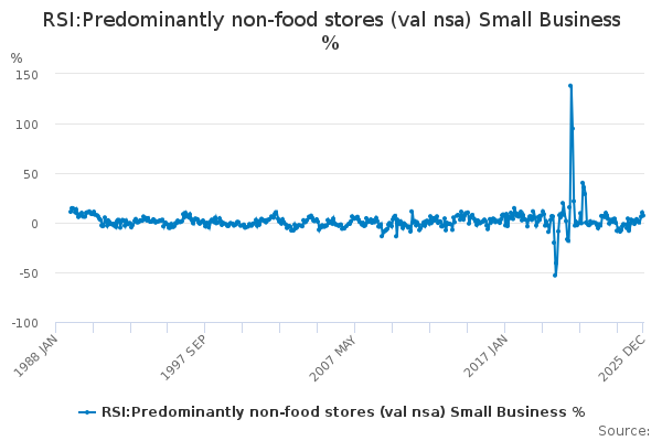 Download this time seriesRSI:Predominantly non-food stores (val nsa) Small Business %
