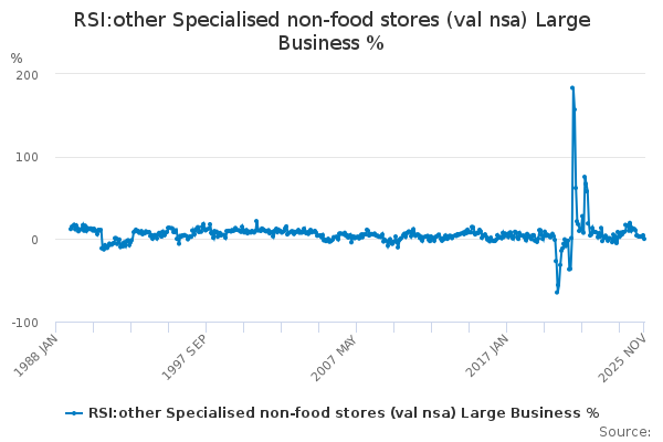 Download this time seriesRSI:other Specialised non-food stores (val nsa) Large Business %