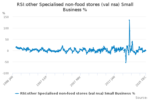 Download this time seriesRSI:other Specialised non-food stores (val nsa) Small Business %