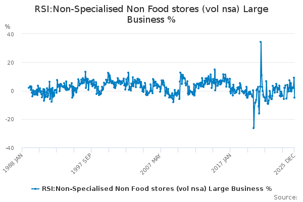 Download this time seriesRSI:Non-Specialised Non Food stores (vol nsa) Large Business %