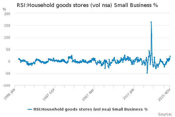 Download this time seriesRSI:Household goods stores (vol nsa) Small Business %