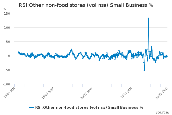Download this time seriesRSI:Other non-food stores (vol nsa) Small Business %