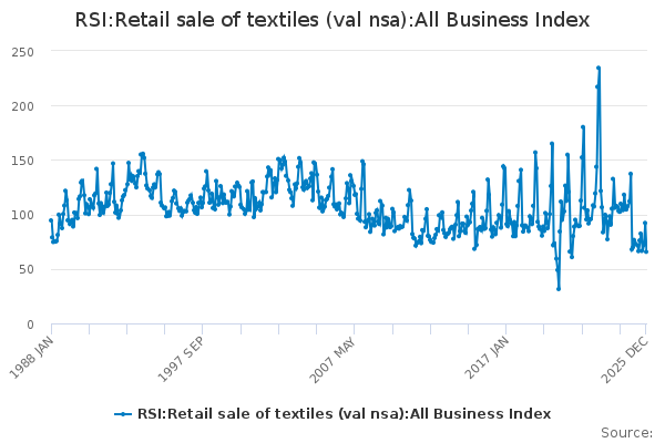 Download this time seriesRSI:Retail sale of textiles (val nsa):All Business Index