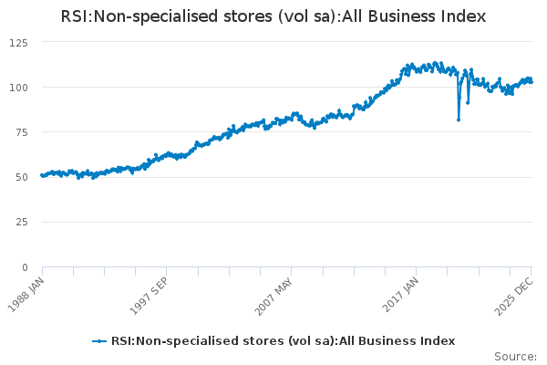 Download this time seriesRSI:Non-specialised stores (vol sa):All Business Index