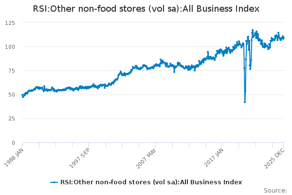 Download this time seriesRSI:Other non-food stores (vol sa):All Business Index