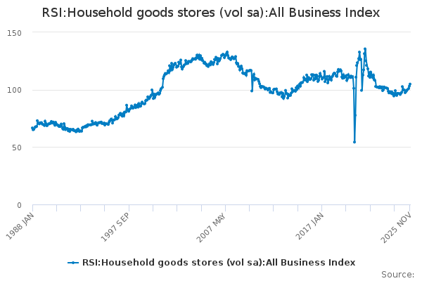 Download this time seriesRSI:Household goods stores (vol sa):All Business Index